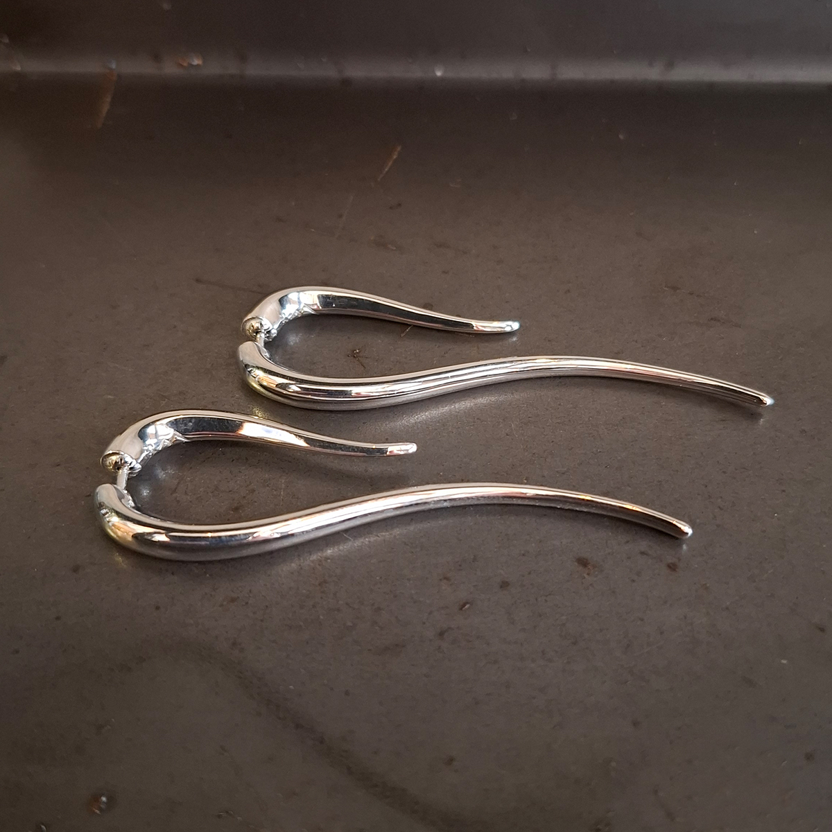 Σκουλαρίκια από επιροδιωμένο ασήμι 925ο, σχεδιασμένα από το studio Eleftheriou. Ρευστές, οργανικές γραμμές αγκαλιάζουν το αυτί πέρα από τα συνηθισμένα! Ιδανικά για εσάς που αναζητάτε statement κοσμήματα που θυμίζουν έργα τέχνης!