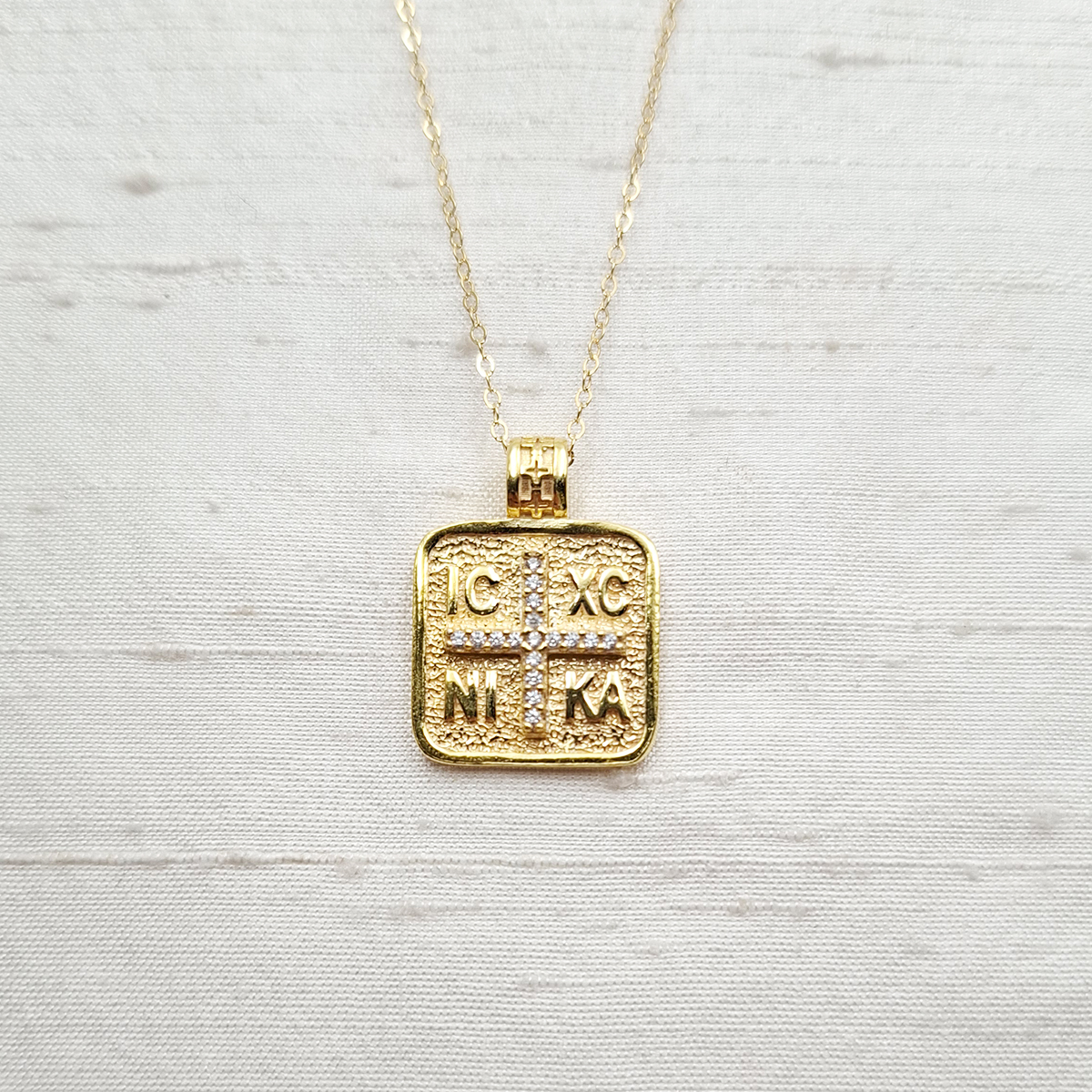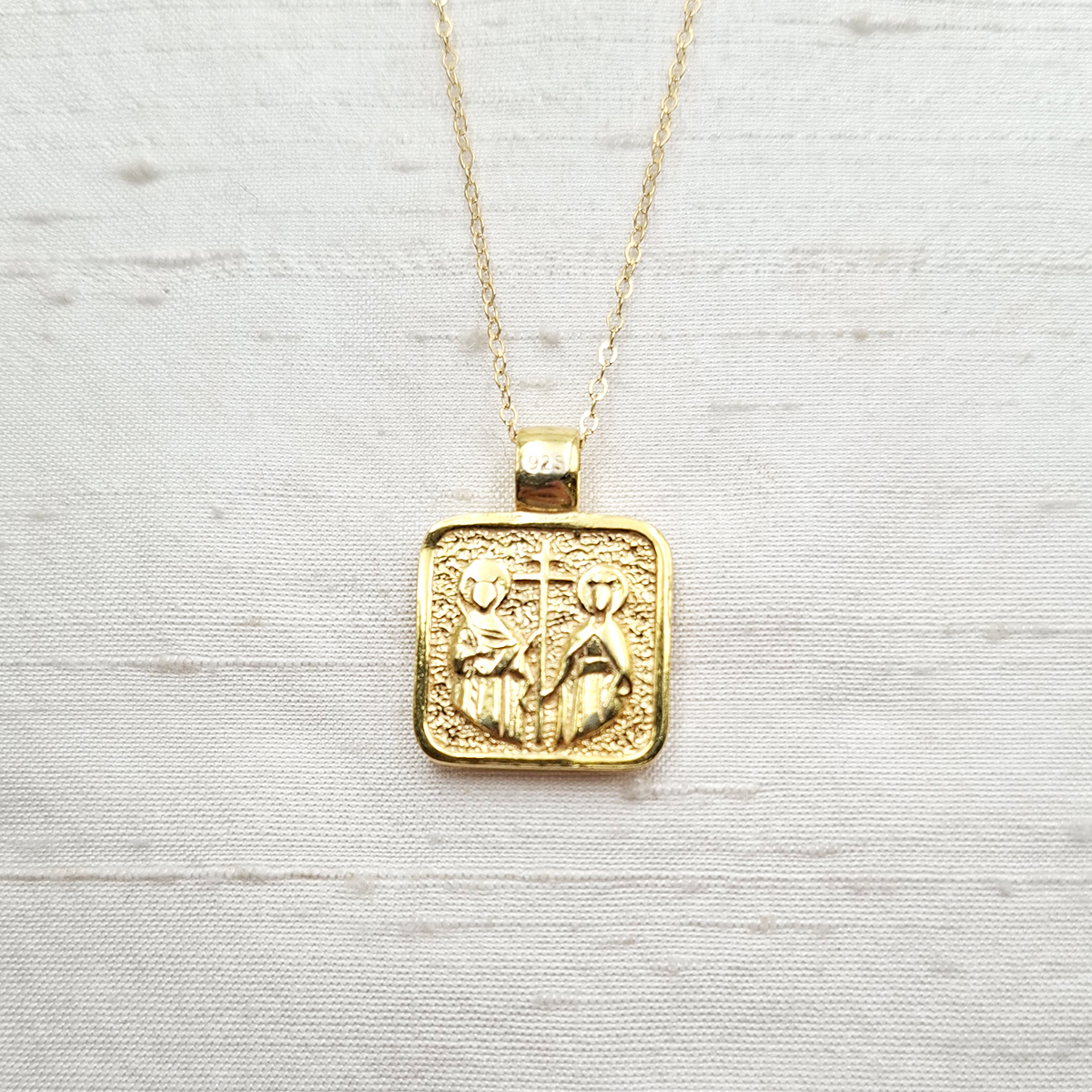 Κωνσταντινάτο μενταγιόν δύο όψεων από επιχρυσωμένο ασήμι 925ο. Ένα κομψό και διαχρονικό κόσμημα με συμβολικό χαρακτήρα. Συνδυάστε το και με άλλα κολιέ για το απόλυτο layering!