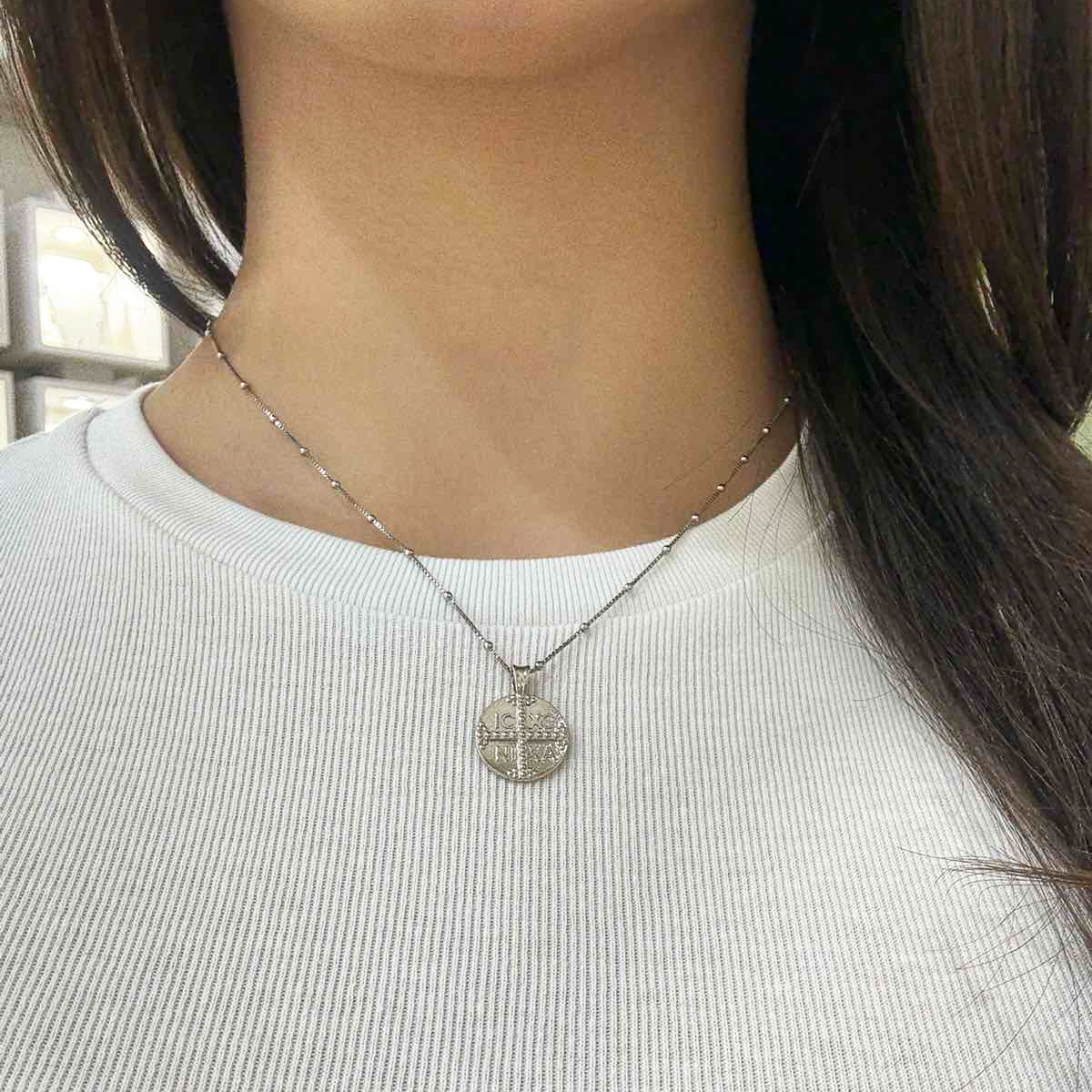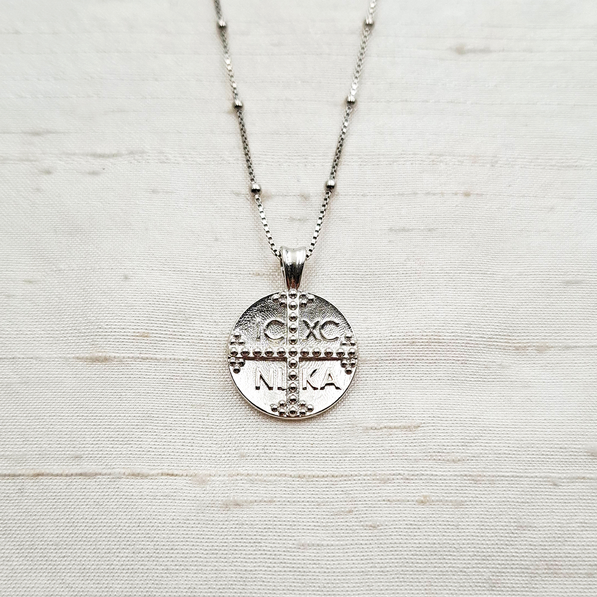 Κωνσταντινάτο μενταγιόν από επιροδιωμένο ασήμι 925ο και μια ιδιαίτερη αλυσίδα μήκους 40 εκατοστών συν προέκταση. Το μενταγιόν έχει διάμετρο 2 εκατοστά. Ένα ξεχωριστό κόσμημα που χαρίζει σε κάθε σας εμφάνιση!
