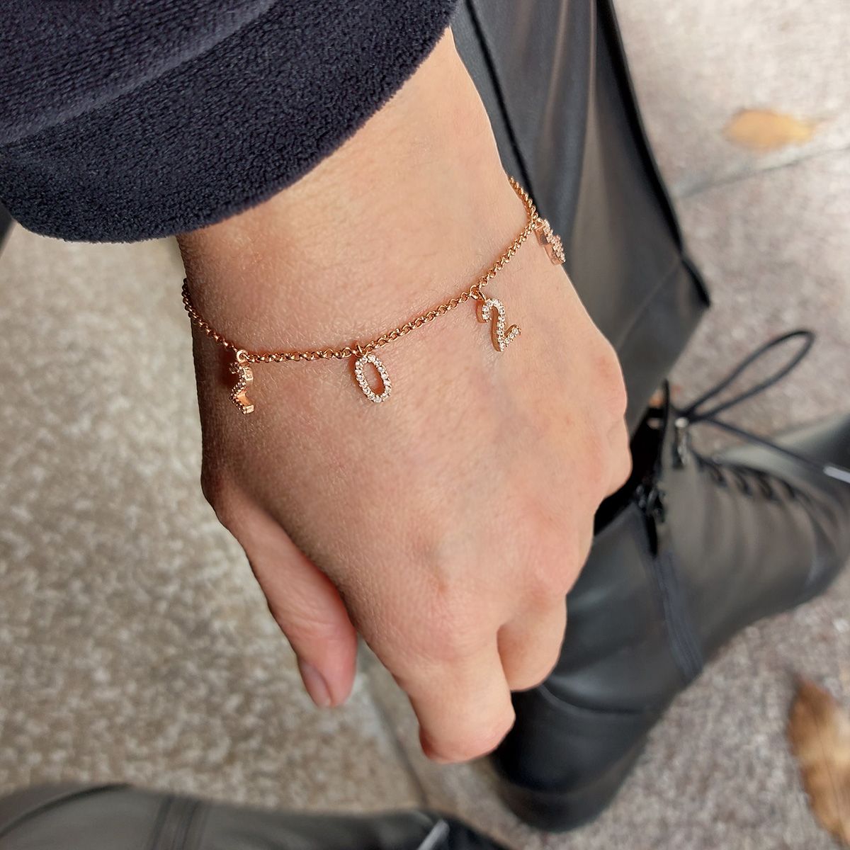 Γούρι βραχιόλι, από ροζ επιχρυσωμένο ασήμι 925ο και λευκά cubic zirconia, με μήκος 17.5 εκατοστά συν προέκταση. Για μία νέα χρονιά, γεμάτη αισιοδοξία! Έρχεται σε εσάς με δωρεάν μεταφορικά!