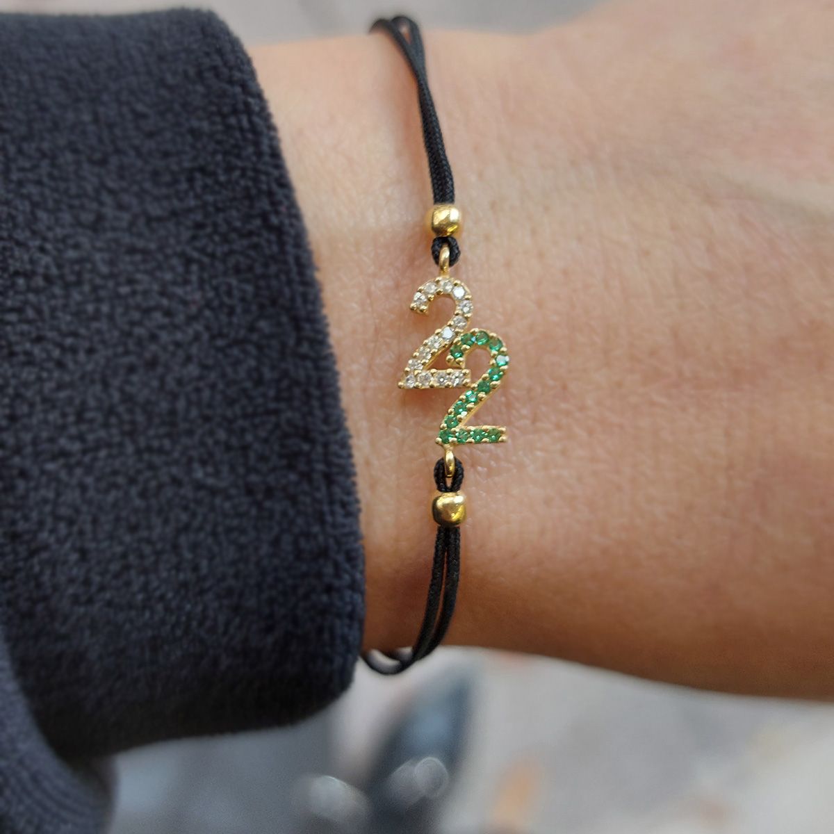 Γούρι βραχιόλι, από επιχρυσωμένο ασήμι 925ο, λευκά και πράσινα cubic zirconia, με κορδόνι και πλέξη μακραμέ στο κούμπωμα. Έρχεται σε εσάς με δωρεάν μεταφορικά και τις καλύτερες ευχές μας για ένα υπέροχο 2022!