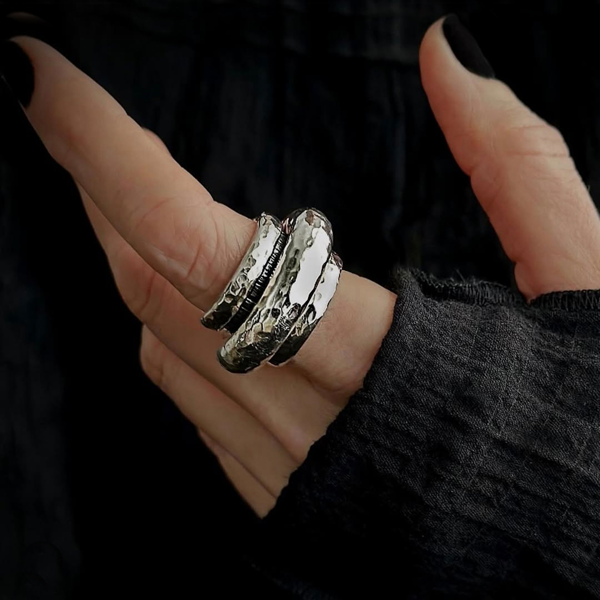 Ένα δαχτυλίδι που δεν χρειάζεται συστάσεις. Bold,ξεχωριστό και απόλυτα stylish για εμφανίσεις που τραβάνε βλέμματα. Από μασίφ ασήμι 925ο και ανάγλυφη υφή που αντανακλά το φως με μοναδικό τρόπο. Επικοινωνήστε μαζί μας για να σας βοηθήσουμε με το νούμερό σας.