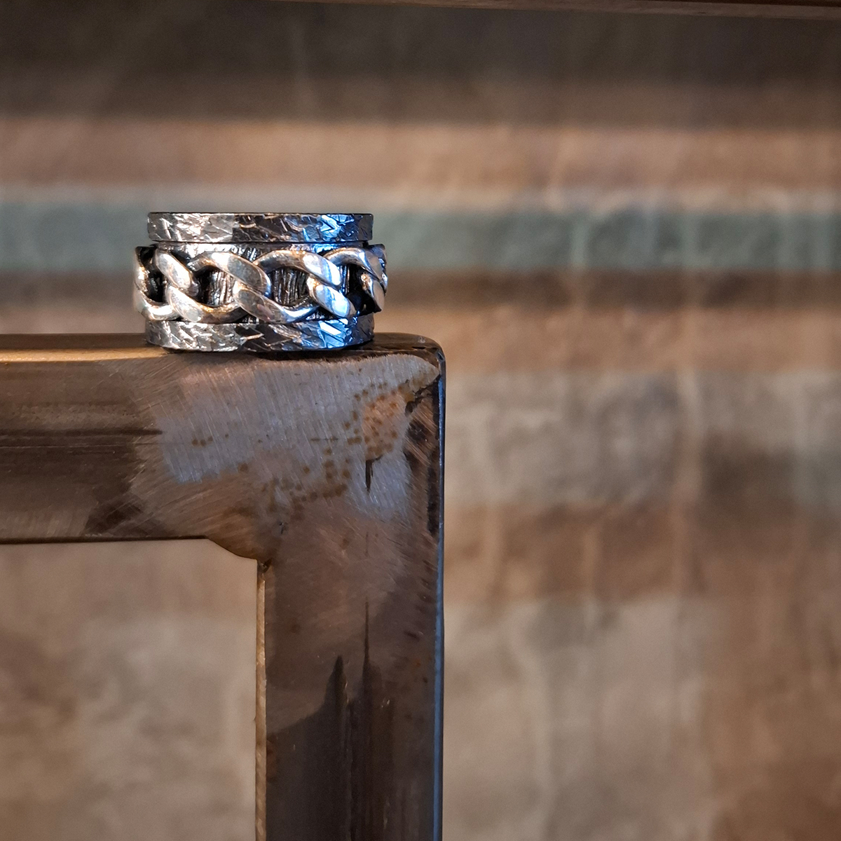 Ασημένιο δαχτυλίδι με edgy πλαϊνά και πλεκτή αλυσίδα στο κέντρο για δυναμικό χαρακτήρα.Unisex σχέδιο που ταιριάζει εξίσου σε άντρα και γυναίκα.