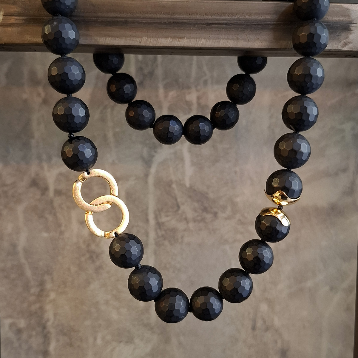 Μαύρος όνυχας, η πέτρα της αυτοκυριαρχίας και του αυτοελέγχου! Χειροποίητο κολιέ 50 εκατοστών, με πέτρες ταγιέ 14 χιλιοστών, περασμένες σε μεταξοκλωστή με κόμπους ενδιάμεσα και επίχρυσες λεπτομέρειες από ασήμι 925ο. Συνδυάστε το με το ίδιο βραχιόλι ή ενώστε τα και δημιουργείστε ένα μακρύτερο κολιέ!
